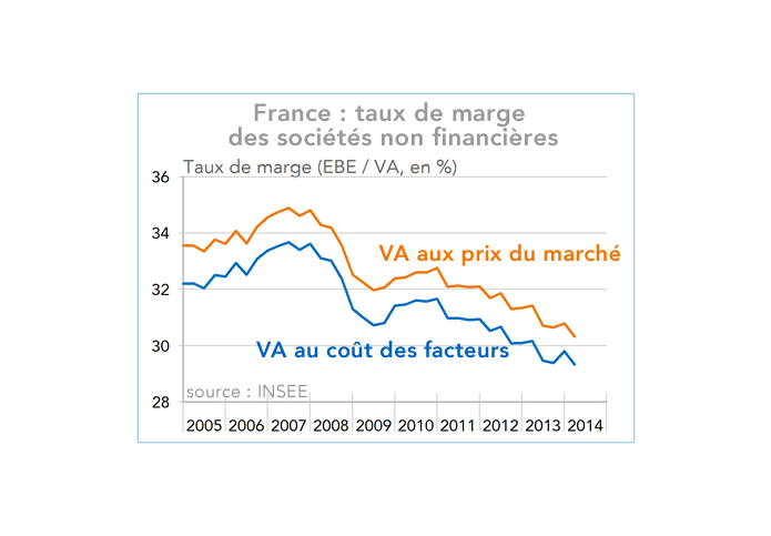 Alors que l’activité en France stagne depuis le début de l’année 2014, l'inertie relative des salaires entraîne un nouvel effritement des marges des entreprises que le CICE ne peut entièrement compenser. Cela risque de retarder le redressement de l’investissement productif, clé du retour de la croissance.