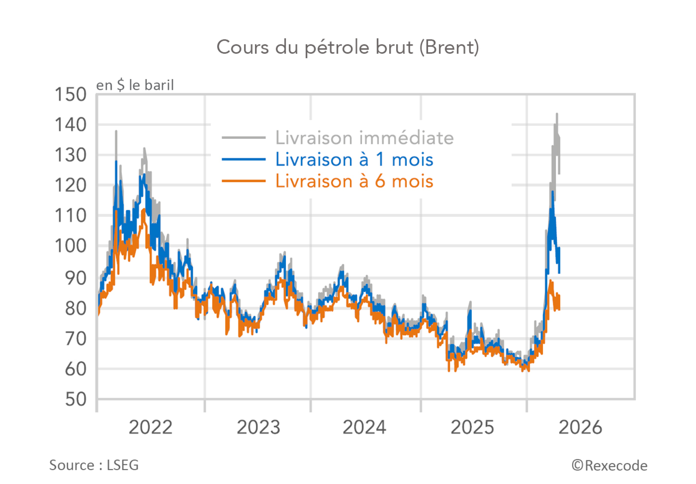 Le conflit au Moyen-Orient suit son schéma habituel, l’ouverture du détroit d’Ormuz annoncée vendredi par l'Iran n’a pas survécu au week-end, pas plus que la baisse du cours du Brent. Un grand écart de prix s’est installé entre les différents termes de livraison des contrats pétroliers, signal de paris spéculatifs mais aussi d'un relatif optimisme sur l'issue de la crise. Les prix oscillent entre 90$ et 100$ à un mois, terme le plus fréquemment négocié et commenté, contre seulement 80$ à 6 mois. La production mondiale de pétrole a pourtant déjà baissé sensiblement en mars selon l’agence américaine EIA, une chute qui devrait s’amplifier en avril.