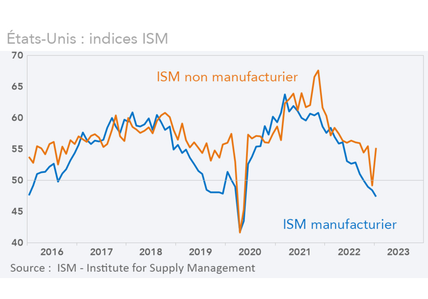 La semaine a été marquée par les hausses attendues des taux directeurs de la Fed, de la BoE et de la BCE, et par les résultats positifs d’enquêtes de conjoncture, l’industrie et le secteur de la construction semblant cependant en posture plus délicate que les services. Aux Etats-Unis et en zone euro, les risques sur les prix portent désormais moins sur les biens que sur les services. C'est aussi le cas en Chine.